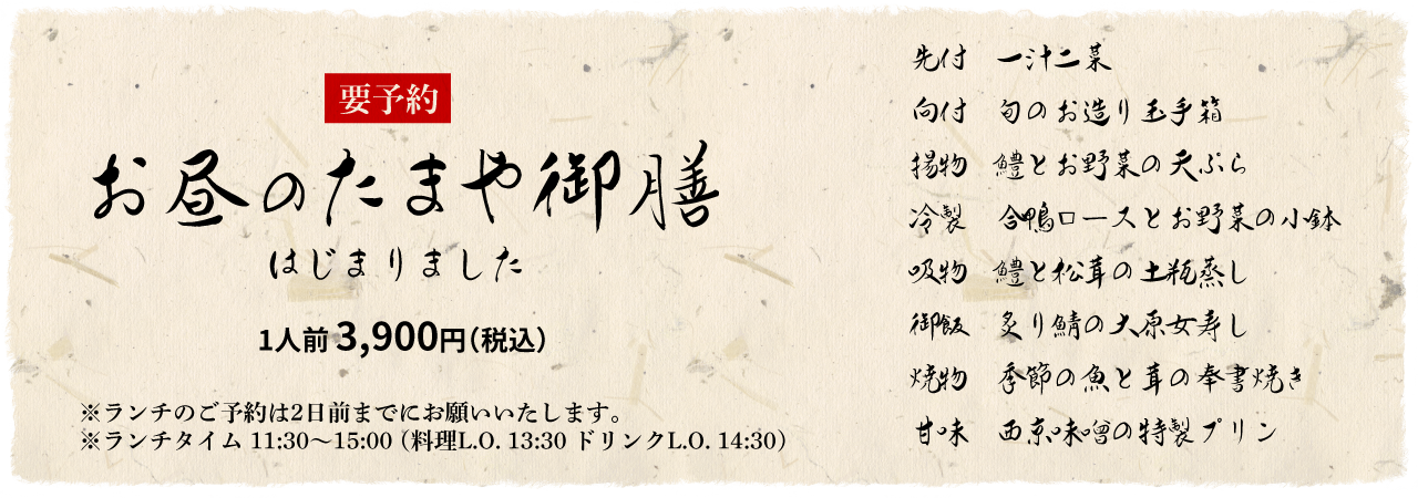 ※ランチタイム 11:30~15:00 (料理L.O. 13:30 ドリンクL.O. 14:30)となっております。